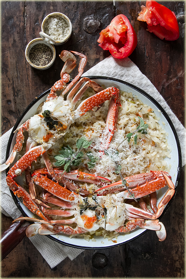 ריזוטו שלושה בצלים ועראק עם סרטנים צלויים